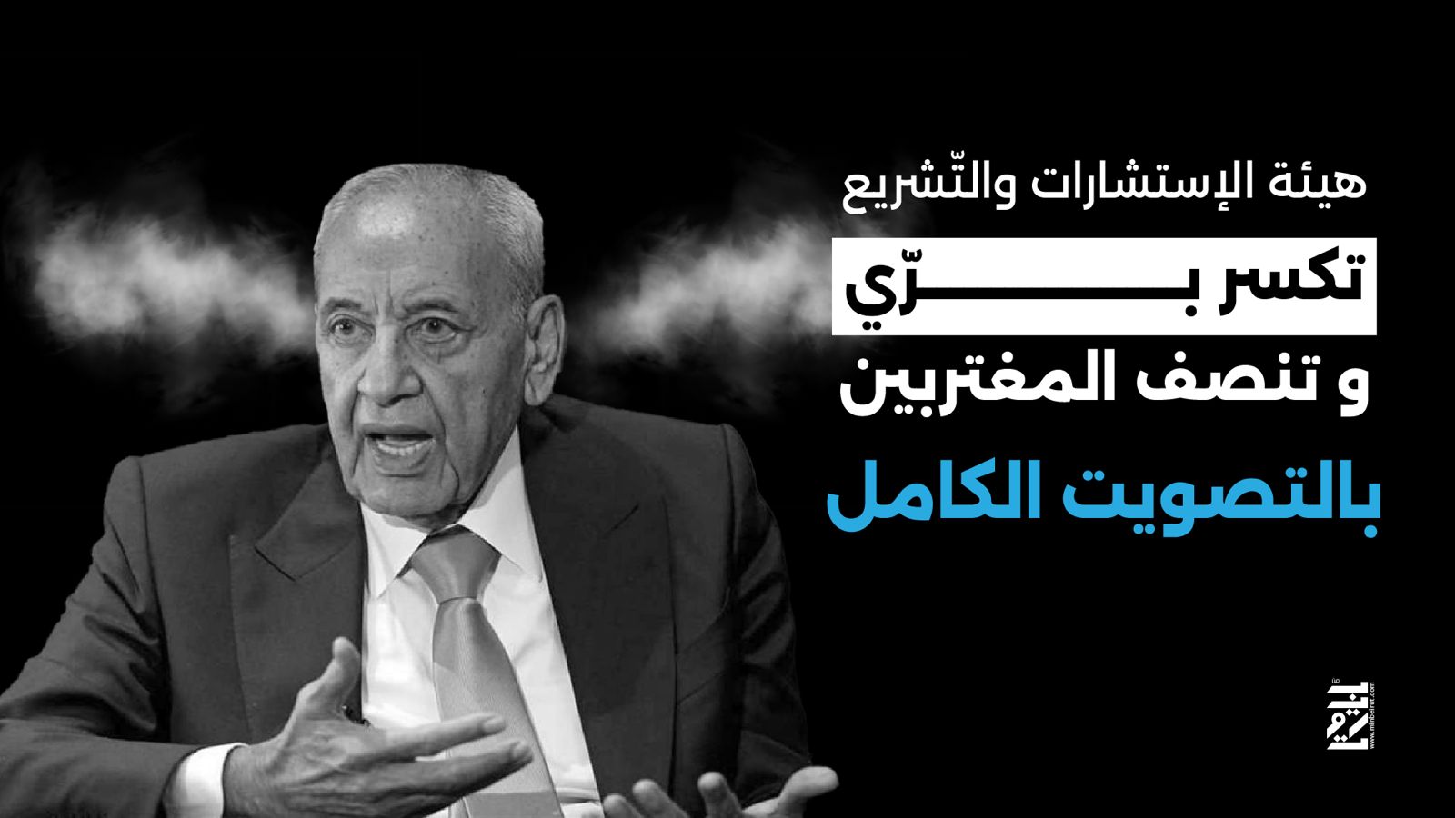 الرهان في المرحلة الحاليّة على نبيه برّي، الذي عادت الطابة لملعبه، لجهة دعوة المجلس النيابي إلى تعديل قانون الانتخابات بما يتوافق مع الرأي الصادر عن هيئة الاستشارات والتشريع، ومطالب المغتربين، والأكثريّة النيابيّة، ومبادئ العدالة والمساواة، أو الإبقاء على تزمّته وتشبّثه برأيه رغم استحالة العمل به وافتقاده لأدنى درجات المنطق.
